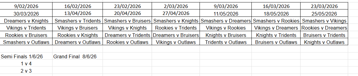 Wizards v Shadows Dragons v Legends Hornets v Choppers |
